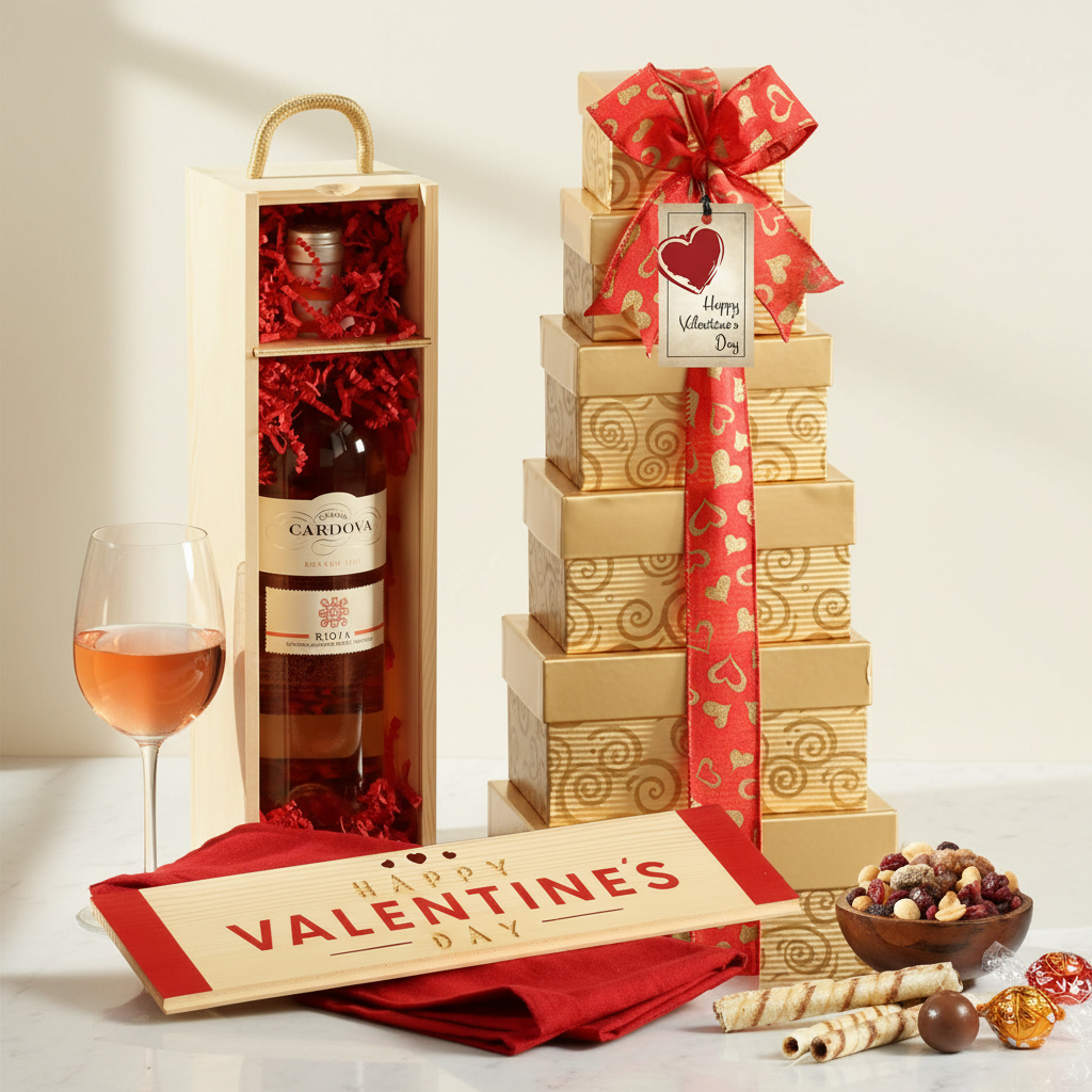 The Valentine’s Day Towering Heights Gift Tower is a great choice for men who enjoy variety. Filled with gourmet snacks, chocolates, cookies, and crunchy treats, this impressive tower offers something for every craving. It is a generous and satisfying gift that feels special from the moment it arrives.