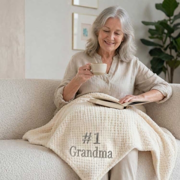 Wrap Grandma in comfort with this soft cream throw, beautifully embroidered with “#1 Grandma.” Sized at 50" x 60", it’s perfect for cozy nights, relaxing mornings, and everyday moments she’ll cherish. A thoughtful keepsake that adds warmth, style, and a loving reminder she’ll use again and again.