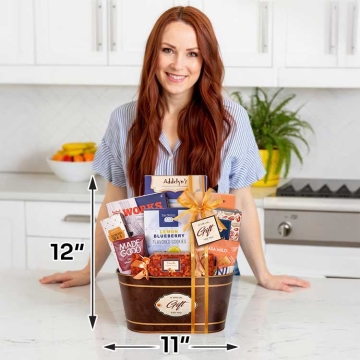 This beautiful A Gift For You Snacks Gift Basket is the perfect way to share your well wishes. This elegant gift basket is brimming with a delicious assortment of snacks, gourmet treats, tasty nuts, and many more exciting delights.