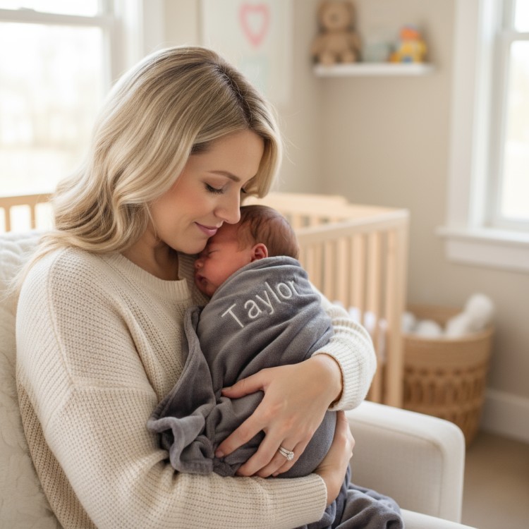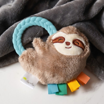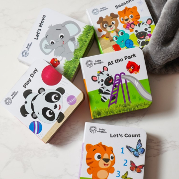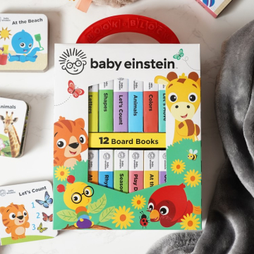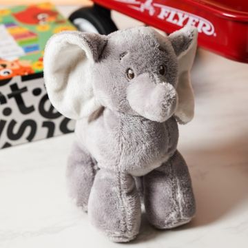 A Radio Flyer Wagon filled with a Zoo Animal, a Baby Einstein book set, sensory-building toys, rattles, and a CozyCloud blanket that can be personalized.