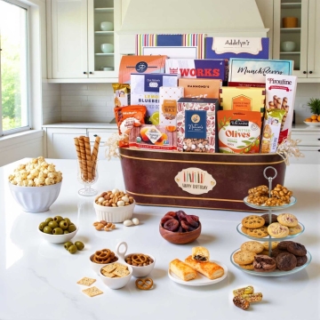 Celebrate someone's special day with our delightful Birthday Gift Basket, brimming with gourmet cookies, savory crackers, irresistible popcorn, and an assortment of other delectable treats. Perfect for showing your appreciation and spreading joy, this beautifully curated basket offers a taste sensation for every palate. Make their birthday memorable with this irresistible collection of snacks and sweets!