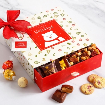 Indulge in the perfect gift for any occasion with our deluxe Section Gift Box. Packed with a delectable assortment of Lindt truffles, mouthwatering cookies, Chocolate trail mix and Enstrom chocolate toffees, it's a sweet delight that's sure to satisfy every craving.