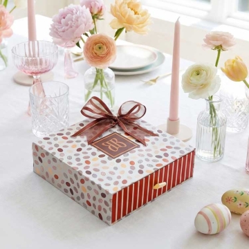 The perfect Easter gift with our deluxe Section Gift Box. Packed with a delectable assortment of Lindt truffles, mouthwatering cookies, Chocolate trail mix and Enstrom chocolate toffees, it's a sweet delight that's sure to satisfy every craving.