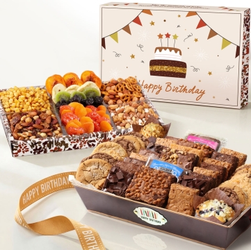 Celebrate their special day with our Deluxe Birthday Bakery & Dried Fruit Gift Tray Duo. This delightful assortment features premium dried fruits, nuts, and baked treats—beautifully arranged for a festive presentation. A thoughtful and delicious way to wish someone a happy birthday and make their day extra sweet.