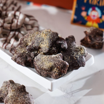An elevated Purim gift featuring 9 clear lucite boxes filled with assorted chocolates, nuts, and sweets. Thoughtfully curated for a beautiful and meaningful mishloach manot.