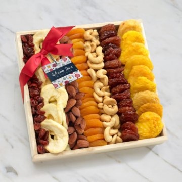 This beautiful Dried Fruit and Nuts Gift Tray is the perfect gift to give during Rosh Hashanah. Let someone special start off the new year with a beautiful wooden tray filled with an assortment of premium dried fruits & nuts. Your recipient can reuse and repurpose the premium wooden tray after enjoying the delicious dried fruits and nuts.