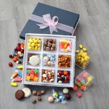 This gourmet Easter box comes with nine individual lucite boxes, each featuring a unique Holiday treat!