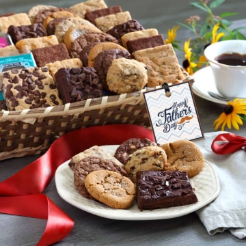 Warm Dad’s heart on this Father's Day with our oversized bountiful gourmet gift basket. This bakery gift basket comes filled with an assortment of oven-fresh brownies and a select choice of perfectly baked cookies that will surely make his day special.