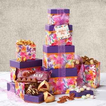 Ensconced in our exclusive decretive boxes are chocolate-dipped pretzels, artisanal caramel popcorn, Geneve Alps chocolate truffle bar, a hamantash, chocolate wafer squares, and more!