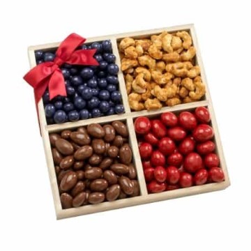 An absolutely delicious way to share any and all sentiments! This natural wood tray is loaded with tasty treats and delightful snacks.