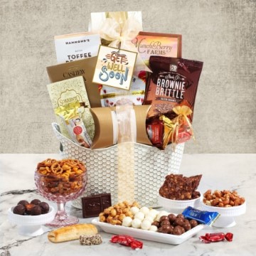 This delightful get well gift is sure to put a smile on their face! This premium gift basket is filled to the brim with gourmet treats that are sure to brighten their day. Treat your recipient to a delicious assortment of Roasted and Salted Pistachios, Seasoned Pretzel Twists, Ghirardelli Chocolate Squares, and many more gourmet goodies.