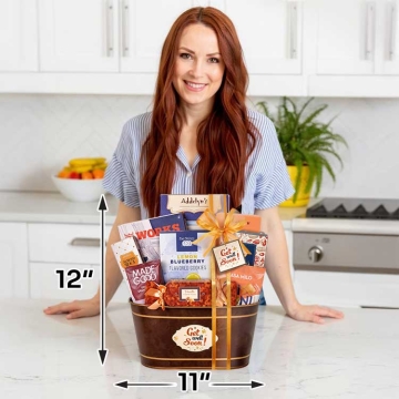 This beautiful Get Well Soon Snacks Gift Basket is the perfect way to share your well wishes. This elegant gift basket is brimming with a delicious assortment of snacks, gourmet treats, tasty nuts, and many more exciting delights.