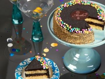 Celebrate Mothers Day with this gourmet twist on a traditional favorite. Our Golden Fudge Celebration cake is two moist & savory layers of yellow cake topped with a rich and creamy fudge frosting, celebration confetti sprinkles, and toasted-golden cake crumbs all around the side. Includes a Chocolate "Mother" Plaque, matching Greeting Card and is packaged in an elegant gift box!