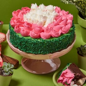 A delightful Easter surprise! This gourmet Easter flower cake is a layer of delicious chocolate cake, covered in frosting and decorated with Pink and White buttercream embellishments that create a one of a kind flower sensation! Each gift arrives in a gift box.