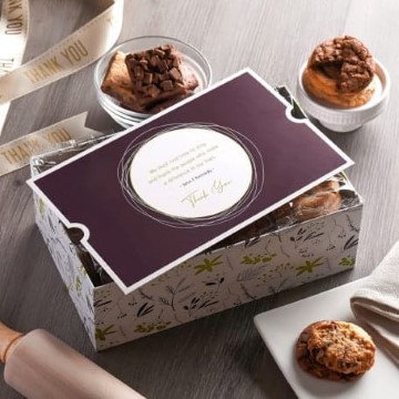 This magnificent gift box is the perfect way to express your gratitude with a thoughtful and delicious gift. This gift box is filled with mouth-watering treats such as Chocolate Ganache Brownies, Chocolate Fudge Brownies, Peanut Butter Fudge Brownies, Oatmeal Raisin Cookies, Mint Chocolate Chip Cookies, and many more freshly baked brownies and cookies to show your appreciation.
