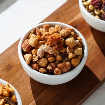 Discover indulgence with our Nut and Trail Mix Gift Tray. Six varieties, endless satisfaction. From the rich crunch of toasted corn nuggets to the sweet blend of dried fruits and sweet nuts, each bite is a new journey. Perfect for gifting or savoring yourself. Elevate your snacking today.