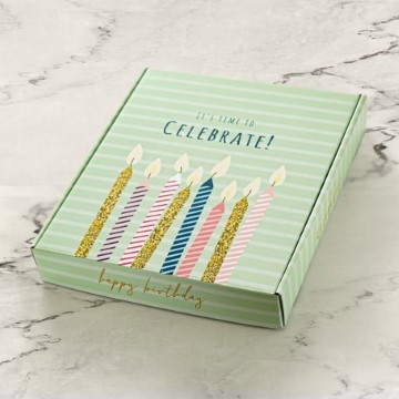 There’s no better way to say happy birthday than with a gift box filled with scrumptious birthday treats. This festive gift box features a birthday design on the exterior along with a special birthday message on the inside. This unique box opens to reveal a delicious assortment of sweet, salty, and savory gourmet treats.