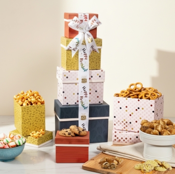 Celebrate their special day in style with our Birthday Gourmet Gift Tower, a delightful array of snacks and sweets. From savory delights to tempting chocolates, each tier is a celebration of flavor and indulgence. Give the gift of gourmet joy and make their birthday one to remember.