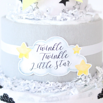 Celebrate the newest arrival with our Moon Diaper Cake . Bursting with 35 ultra-soft Pampers Swaddlers size 2 diapers and three cozy cotton receiving blankets, this delightful creation isn't just a gift—it's a bundle of love and convenience for the new parents. Overflowing with charm and crafted with care, it's the perfect way to welcome the newest addition to the family.
