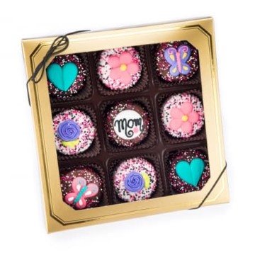 These delicious Oreo® Cookies are perfect for Mother's Day! Wrapped in decadently delicious fine gourmet Belgian Chocolates; Dark, Milk and White, and decorated with an assortment of 100% Hand Made Royal Icing Decorations & non-pariels and Hot Pink Chocolate Drizzles.
