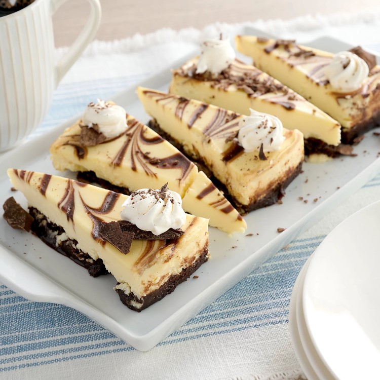 Sugar-free, flourless chocolate truffle cake topped with a layer of no-sugar-added cheesecake with chocolate swirled on top