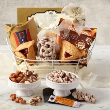 Filled with handfuls of cinnamon-toasted peanuts, a pair of fruit-filled pastries, Honey grahams dunked in white chocolate then drizzled in dark chocolate, butterscotch sweets, and more.
