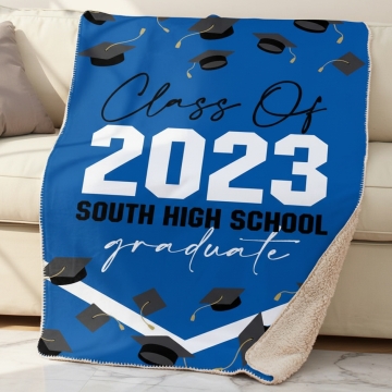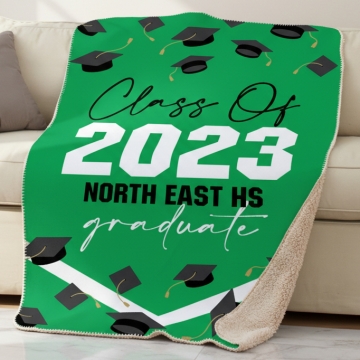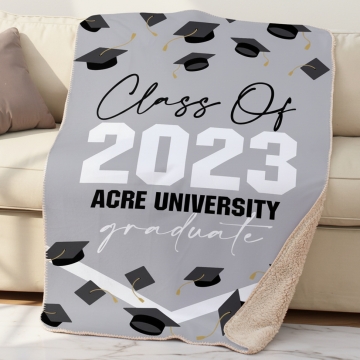 Celebrate your graduate's achievements with the Personalized Graduation Throw Sherpa Blanket. This luxurious blanket features a cozy faux lambswool Sherpa on one side and a sleek faux Micro Mink on the other, ensuring warmth and comfort.
