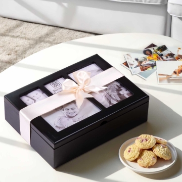 This mahogany photo box closes with a lid to display 5 of your most treasured photos. Gift includes: a gourmet collection of sweet zesty trail mix, assorted fruit candies, heavenly lemon blueberry cookies, and an assortment of gourmet cocoas for your drinking pleasure.