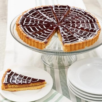 This beautiful and delicious tart was selected as the "Outstanding New Product" Winner at the 1991 International Fancy Food Show. A butter cookie tart shell filled with a crunchy, chewy, almond filling topped with seedless raspberry jam and a decorative swirled glaze.