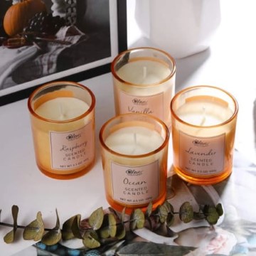 4 FRAGRANCE SCENTS: This scented candle gift set includes 4 glassed of scented candles: lavender, vanilla, ocean, and raspberry. The natural essential oils will leave you feeling calm refreshed and relieved of stress.