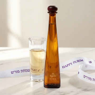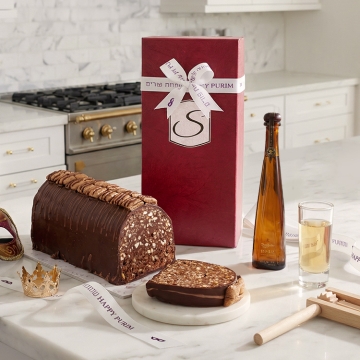 Make a bold impression this Purim with the Signature Selection Gift Set. This refined pairing features a rich, crispy chocolate log layered with texture and flavor, complemented by a miniature bottle of Don Julio 1942 tequila for a sophisticated finishing touch.