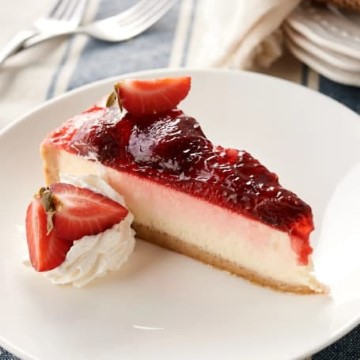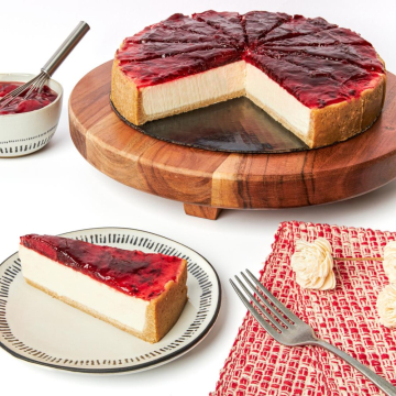 There's only one way to make a cheesecake taste even better - add fruit! Top off an ordinary NY cheesecake with a generous helping of strawberry preserves for a taste that's to die for. Each slice is packed with loads of creamy filling, graham crust and sweet strawberries.10" Serves 14.