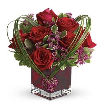 You love the Sweet Thoughts bouquet, and you'd like to make a big impression. Send this and they'll know they've got your heart! With more roses - but the same classic, collectible cube vase in a shade of warmest crimson - this gift will be a surefire hit.