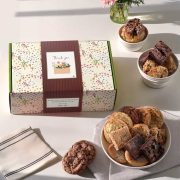Express your gratitude with this thoughtful gift box filled with delicious baked treats. With freshly baked treats such as brownies, cookies, muffins, and more, this gift is sure to show your appreciation.