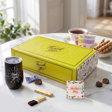 Show your appreciation with this thoughtful Mother’s Day gift box, beautifully designed with a heartfelt “Thank You” message. Inside, she’ll find a soft violet throw blanket, premium Godiva chocolates, a curated selection of gourmet snacks, and a sleek 16oz stainless steel “Thank You” mug with steel straw set. A cozy, delicious, and meaningful way to celebrate her.