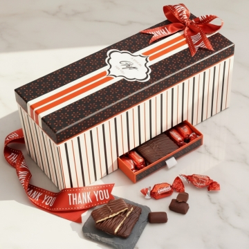 Express your thanks with this luxurious wine gift box. Artistically designed exclusively for Broadway Basketeers, this gift will definitely impress your recipients.