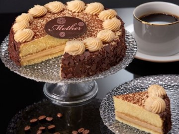 Two layers of coffee washed cake are filled with the traditional mascarpone custard and topped with a light and delectable coffee whipped cream. As an extra touch, this delight is then sprinkled with dark chocolate and cocoa and adorned with a chocolate "Mother" plaque. With just the right mixture of coffee and chocolate, you can be sure that this Italian favorite will perk up anyone's day. Includes a Chocolate "Mother" Plaque for Mothers Day, matching Greeting Card and is packaged in an elegant gift box!