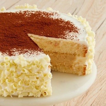 Three is the magic number! We combine the popular Tres Leche flavor into a delicious cake! Delicious yellow cake with a creamy, tasty 3-milk frosting, topped with cocoa and finished with white chocolate curls on the side.