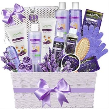 One of the best buys in gift baskets in spa level personal care - this lavender spa basket has everything avocado to nourish your skin and soothe your senses. Simply using our simple and natural ingredient based spa treatments may result in visibly firmer, softer, and smoother skin! Not to mention the luscious scent of refreshing lavender! Grab the perfect spa gift basket for her today!