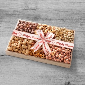 Treat that nut lover to a gourmet nut assortment gift tray, Filled with a variety of nuts including cashews, almonds, pistachio, cinnamon peanuts and more!