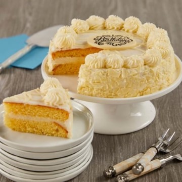 The perfect cake for those who prefer a light and refreshing taste. Every delightful bite contains an amazing blend of yellow cake, vanilla whipped cream mousse filling and a sweet buttercream frosting to keep taste buds craving more. On top of this two-layered cake is a decorative white chocolate and mousse garnish.