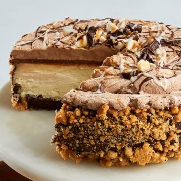 Indulgence redefined with this Italian cake classic! We take a layer of chocolate cake, add a layer of cheesecake, smother the whole thing in chocolate and then, watch out, and eruption of mousse, ribbons of caramel & chocolate. Includes a greeting card that you personalize for your occasion and is delivered packaged in a elegant gift box.