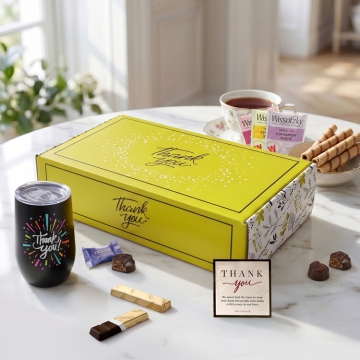 Show your appreciation with this thoughtful gift box, beautifully designed with a heartfelt “Thank You” message. Inside, you'll find a soft violet throw blanket, premium Godiva chocolates, a curated selection of gourmet snacks, and a sleek 16oz stainless steel “Thank You” mug with steel straw set. A cozy, delicious, and meaningful way to share your appriciation.