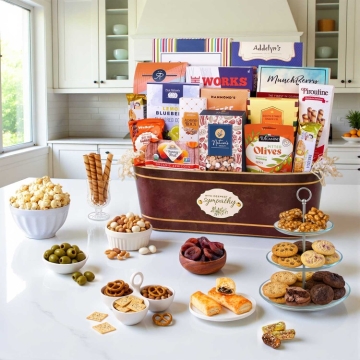 Express your heartfelt condolences with a thoughtful gift basket that is brimming with gourmet treats. Let your recipient know that you are thinking of them with an assortment of gourmet treats, savory snacks, and many more comforting delights.